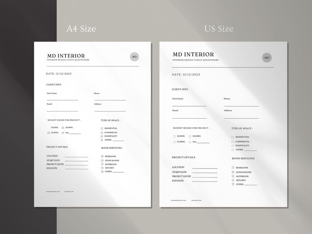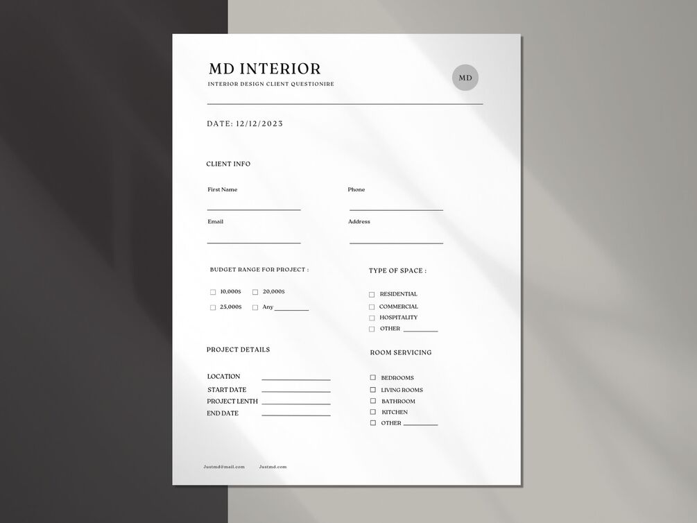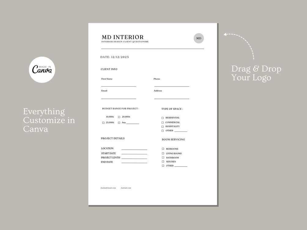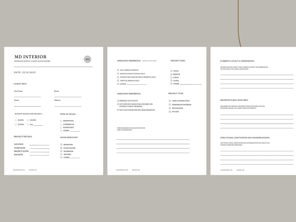 Interior Designer Client Questionnaire Template | interior design form | canva form template | Interior Design Clients Onboarding